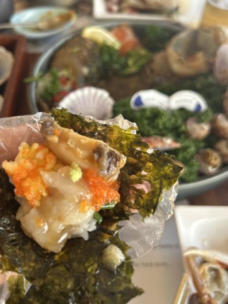 鮑、タコ、海老、サーモン、ホタテ、ツブ